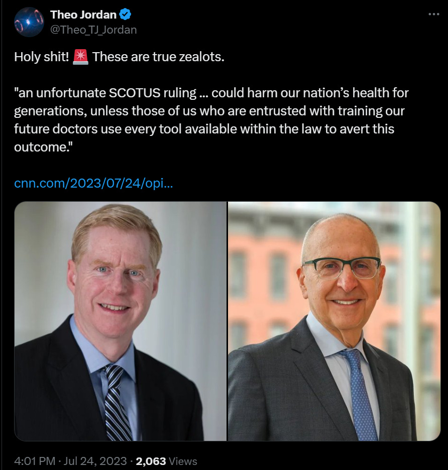 It’s a shocking line, and no one seemed to care. Trump and his right-wing authoritarian fascists are too big a threat to discuss these kind of issues until The Orange Man is removed. And by The Orange Man, they meant DeSantis as soon as he passed Donald in the polls. If you don’t believe me that even the DNC base rejects race-based admissions, then let me prove it to you beyond just my words or theory or conspiracy theory. Heh.